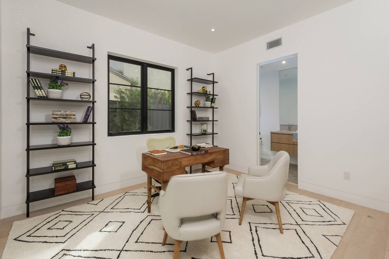 Designed by AIH Development, the home features an array of European finishes. Subtle, refined luxury and modern convenience, no expense was spared in crafting this expansive residence. The design aesthetic of the home: Crisp white walls against pale white oak hardwood floors, punctuated by hits of black steel and grey and white marbles. The exterior façade is constructed of brick, Thermory wood, and hand troweled stucco. Fleetwood over-sized windows & doors allow natural light to radiate throughout. Well thought out spaces, mudroom/laundry room with coat closet and bench, Dining space to host large dinner parties, and a charming powder room. The Formal living room is light-filled with a custom marble fireplace and downstairs 4th bedroom perfect for your home office with a full ensuite bathroom. A multi-car garage easily fits two large cars with charging capabilities, accessible through a solid Thermory wood door. 12-14 ft high ceilings, combined with wall to floor glass doors that fully open, create seamless indoor-outdoor entertaining. Private outdoor dining with a grilling station complete with rotisserie BBQ, and an elegant covered patio that provides shade for the built-in outdoor fireplace perfect for lounging after a swim in the saltwater pool and spa. Large grassy private yard.