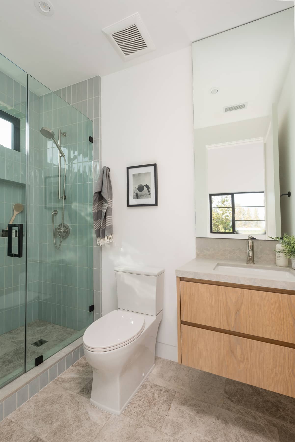The 2nd floor offers two sunlit guest bedrooms/bathrooms with abundant closet space whilst maintaining privacy for the Master Suite. The Master Suite showcases an impressive bedroom with hand-hewn reclaimed beams, a king-sized walk-in closet and views of the Marina skyline and ocean beyond. The lush master bathroom encompasses a freestanding tub, and stunning marble-clad walls and vanity.